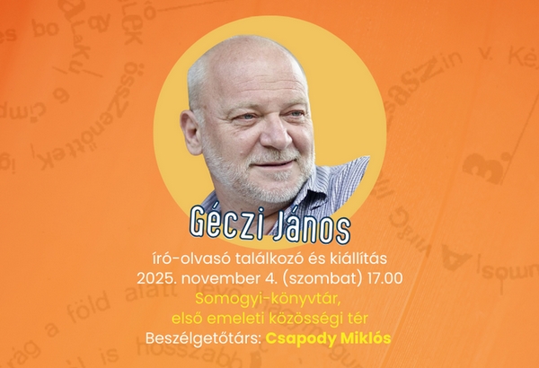 Író-olvasó találkozó Géczi Jánossal és kiállítás az alkotó első képverseiből. A szerzővel Csapody Miklós beszélget 2025. november 4. (kedd) 17.00