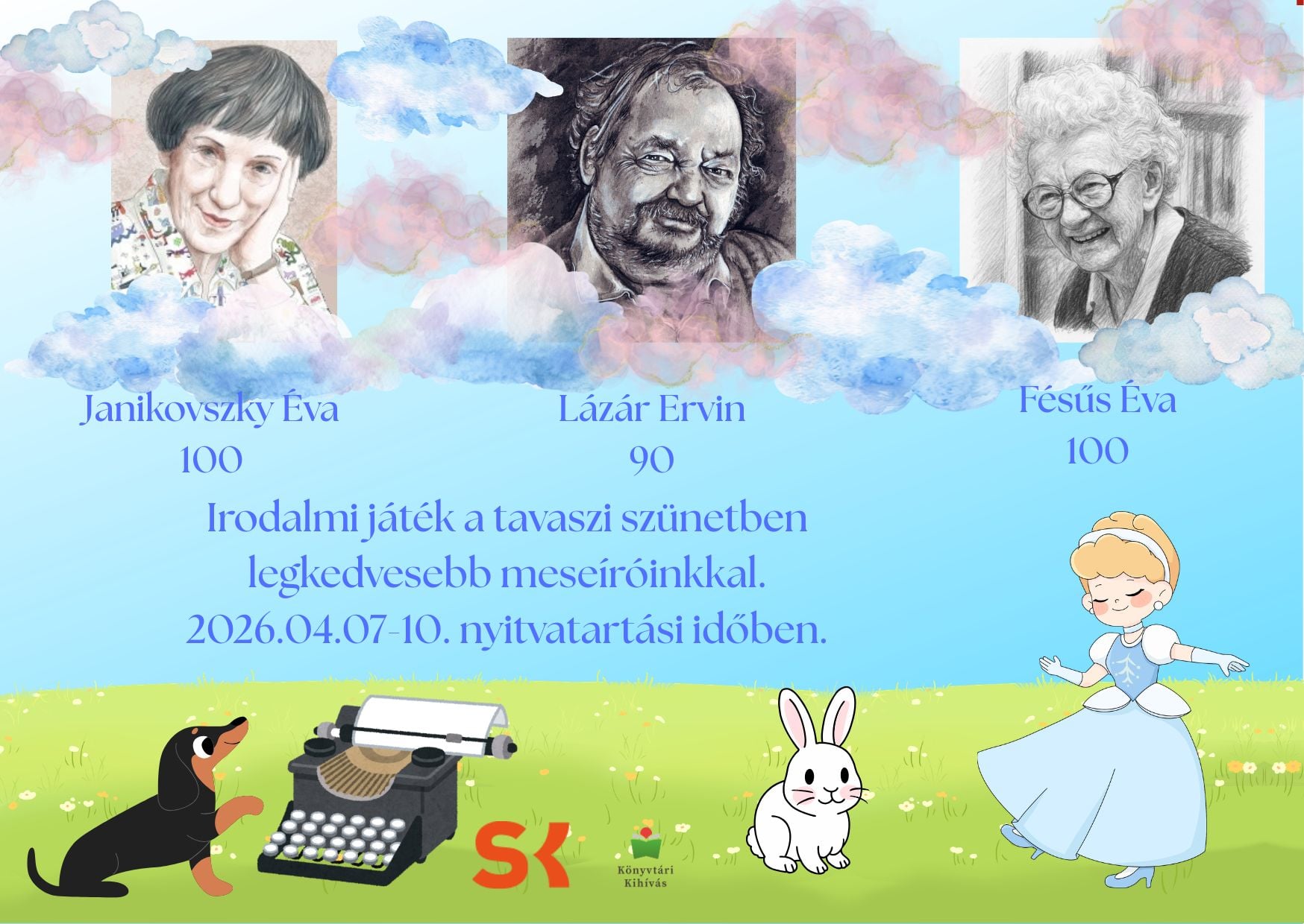 Irodalmi játék Mikkamakkával, Dömdödömmel, Neszepiszével, Toppantóval és társaival – Tavaszi szüneti játszóházunkban irodalmi évfordulós írókra: Janikovszky Évára, Lázár Ervinre és Fésűs Évára emlékezünk. Keress, találj, posztolj! – Április 711. között évfordulós írók verseit várjuk a Gyermekkönyvtárba. A „Posztolj verset az utcára!” kezdeményezés Szegeden már évek óta óriási népszerűségnek örvend, folytatjuk a hagyományt: idén is megemlékezünk a magyar költészet napjáról.