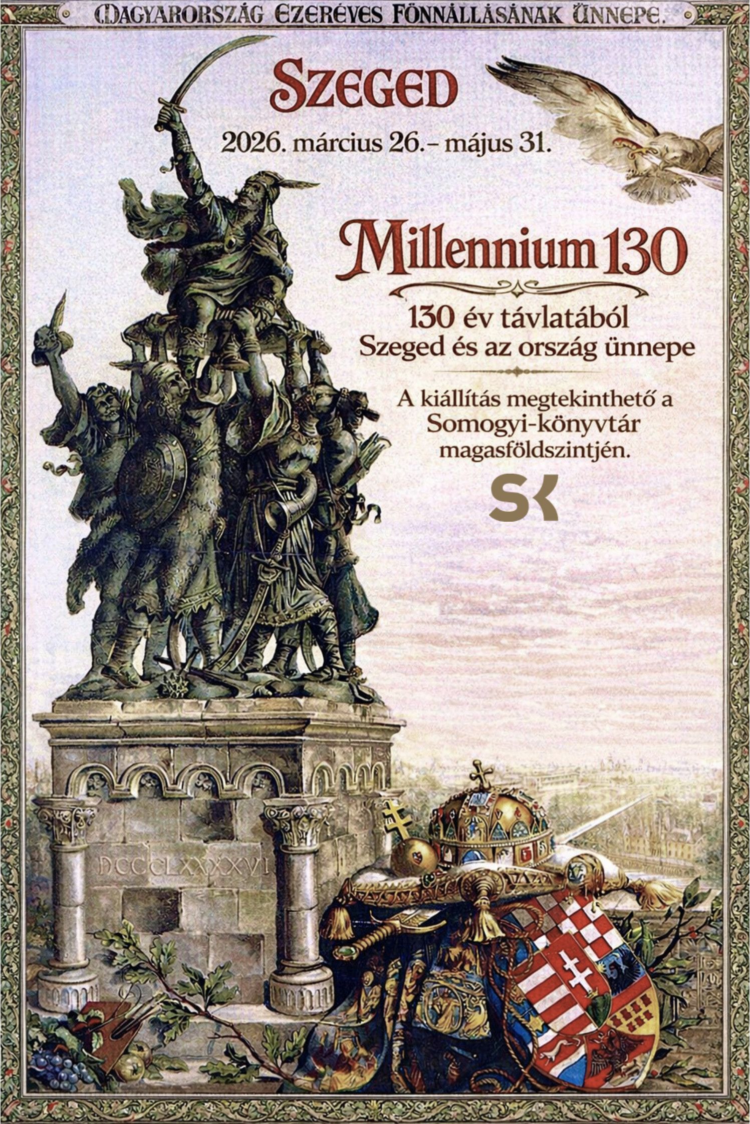 A Somogyi-könyvtár földszintjén látható kiállítás ezekre a fejlesztésekre, építkezésekre és az ünnepségek társadalmi hátterére irányítja a figyelmet. A tárlat külön fejezetet szentel Szeged város millenniumi eseményeinek, korabeli helyismereti dokumentumok, újságcikkek, fényképek és illusztrációk idézik meg a korszak sajátos vizuális világát.